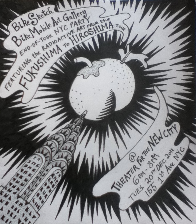 Please join me and come to the BikeSketch NYC Gallery show on Tuesday 20 December 2011 from 6pm to 8pm at the Theater for the New City in LES. The BikeMobile Gallery will be parked as an installation in the center of the gallery floor for two hours only and zine, prints, and free persimmons to all those who attend my first ever, albeit brief, gallery show!